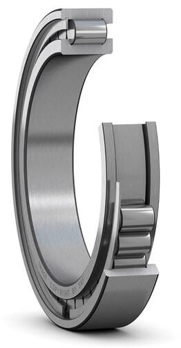 A telegörgős hengergörgős csapágyakat a közepes fordulatszámok mellett fellépő nagyon nagy radiális terhelések felvételére tervezték. A csapágyak maximális számú görgőt tartalmaznak, mivel nincsenek felszerelve kosárral. Az NCF kivitelű csapágyak belső gyűrűjén két váll található, míg a külső gyűrű egy vállal készül, így egy irányban lehetővé teszik a tengely axiális elmozdulását a házhoz viszonyítva. A csapágyat a külső gyűrűben a vállal ellentétes oldalon elhelyezett rögzítőgyűrű tartja össze. A rögzítőgyűrűt nem szabad működés közben axiálisan terhelni.